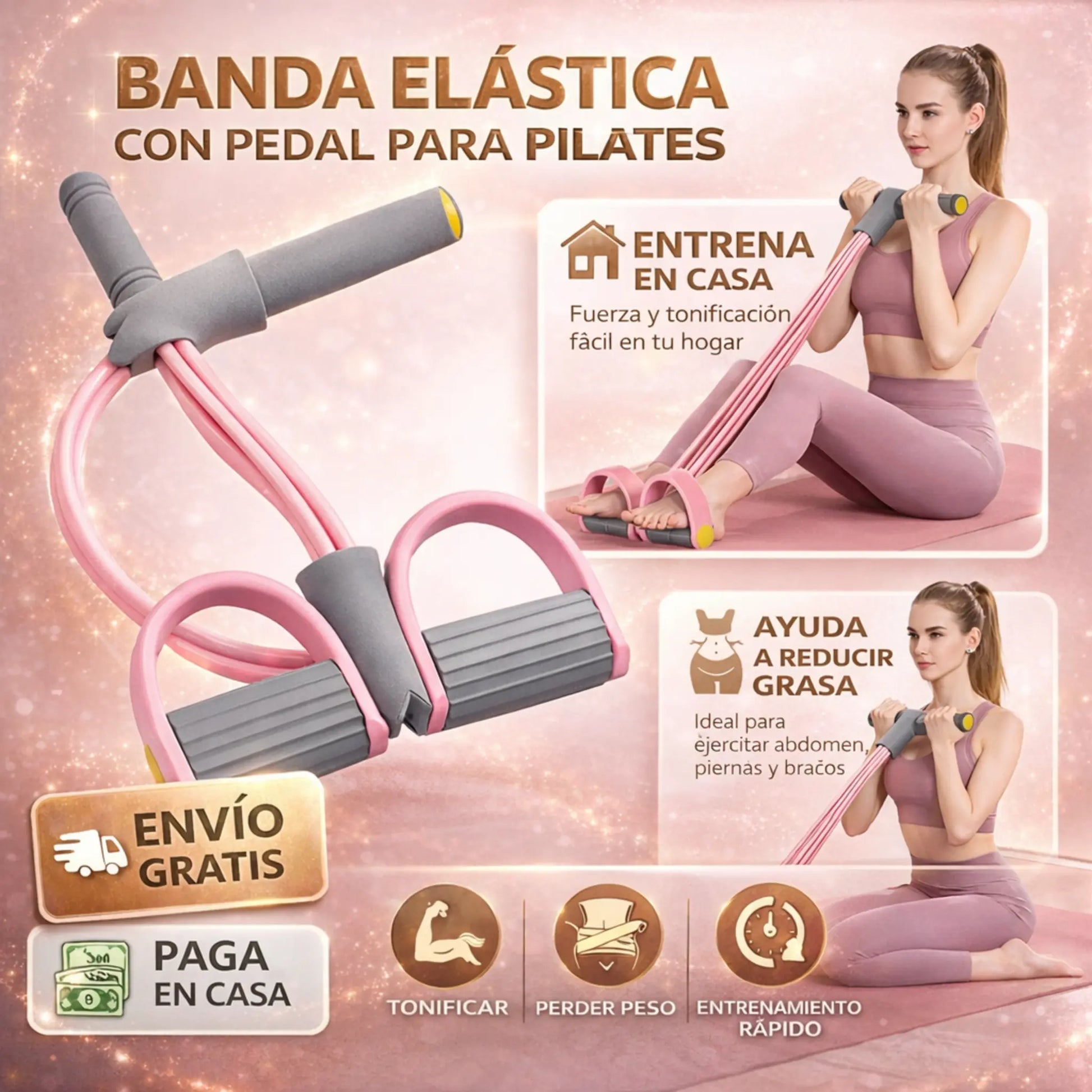 Sirve para tonificar piernas, brazos, glúteos y abdomen desde casa con ejercicios tipo Pilates o resistencia.